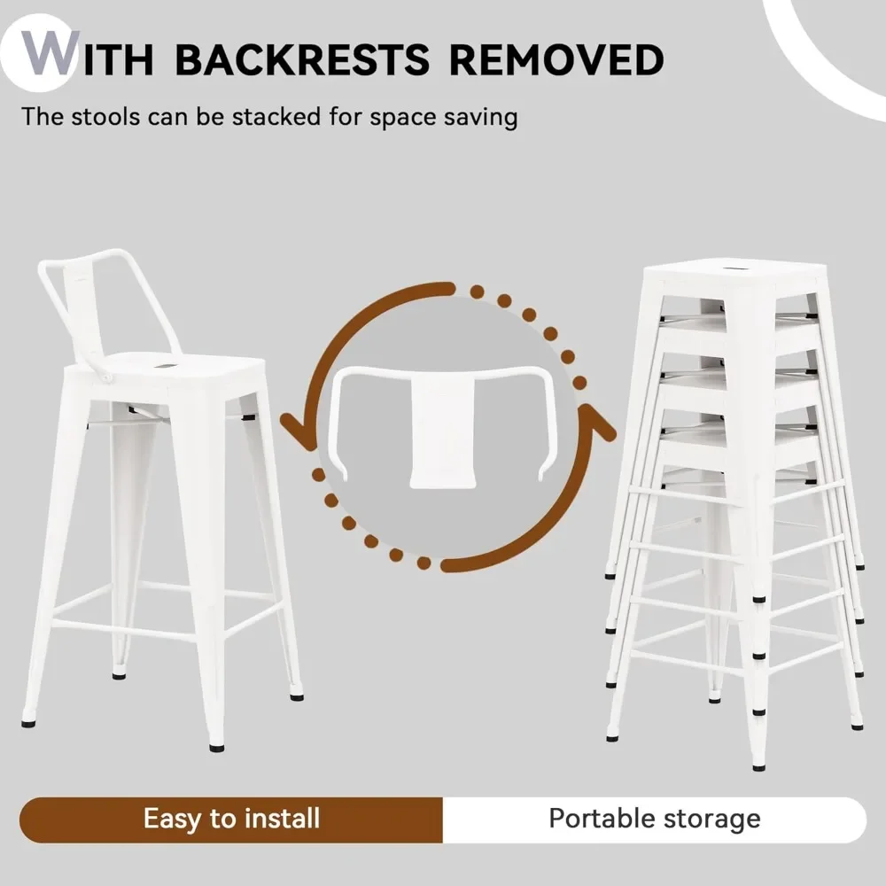 The minimalist industrial look pairs effortlessly with rustic, modern, or contemporary décor, making them versatile additions to any environment. Lightweight yet sturdy, these stools are easy to move and arrange, whether for casual dining, entertaining guests, or creating a stylish seating area outdoors. Their compact design allows for efficient storage when not in use, while the powder-coated finish resists wear and maintains a polished appearance.