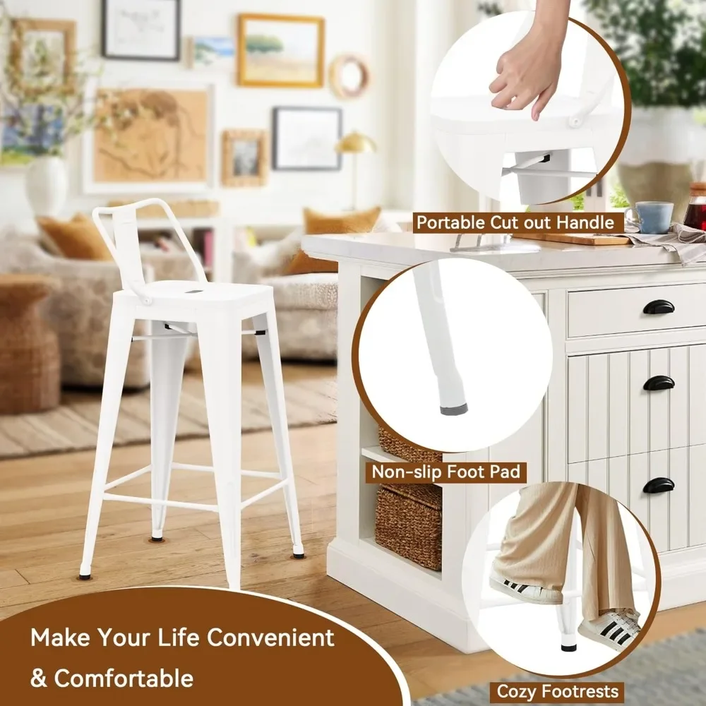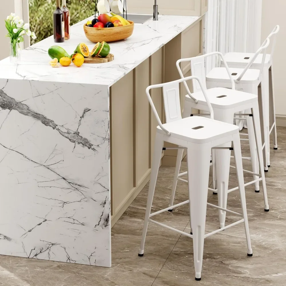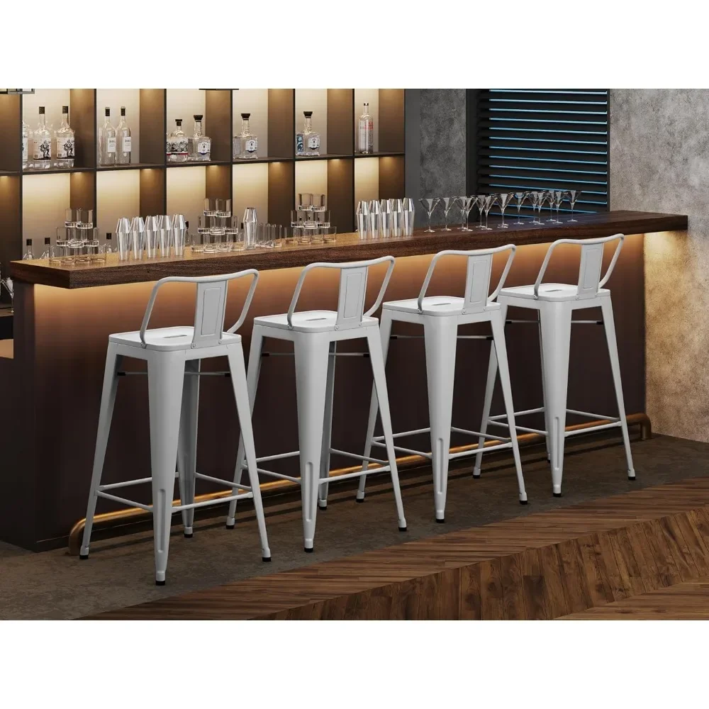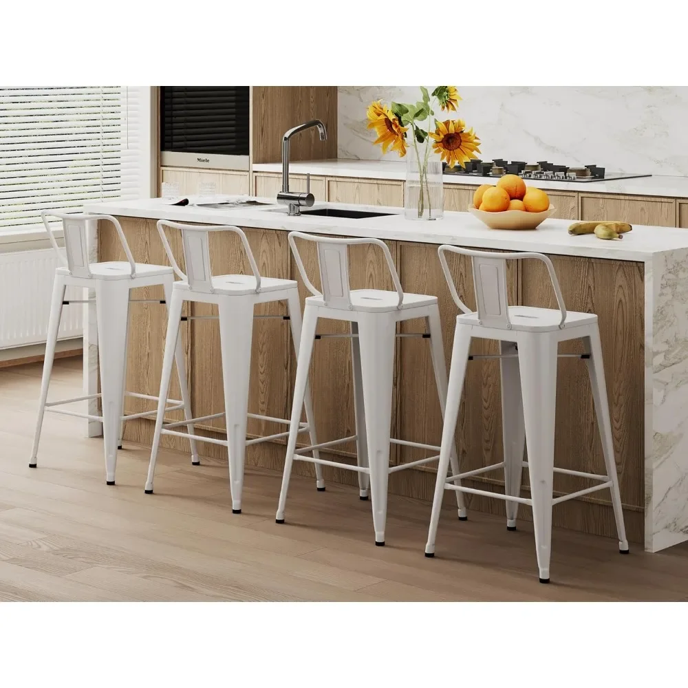Add timeless industrial style to your space with this set of 4 metal barstools, designed for both indoor and outdoor use. At 24 inches in counter height, these stools are perfect for kitchen islands, home bars, cafés, or bistros. Each stool features a supportive backrest for added comfort, blending practicality with sleek design. Crafted from durable steel, they provide stability and resilience, ensuring long-lasting use in high-traffic areas.