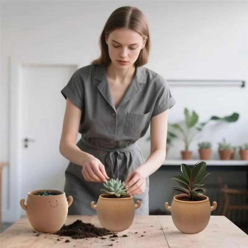 Bring joy and serenity into your space with these decorative smiling face plant pots, designed to uplift both your plants and your spirit. Crafted with charm and durability, they serve as more than simple containers—they become cheerful companions that brighten gardens, balconies, desks, and workplaces alike. Their playful design radiates positivity, reminding us that nature’s beauty is best enjoyed with a smile. Perfect for bonsai, succulents, or small flowering plants, these pots create a harmonious balance between functionality and aesthetics. Whether placed in a quiet study, a lively living room, or a tranquil outdoor corner, they invite a sense of calm and renewal, transforming ordinary spaces into soulful retreats. Each planter embodies the restorative power of greenery, encouraging mindfulness and connection with the rhythms of growth. More than décor, they are symbols of joy, balance, and the gentle reminder that nurturing plants is also nurturing the soul.
