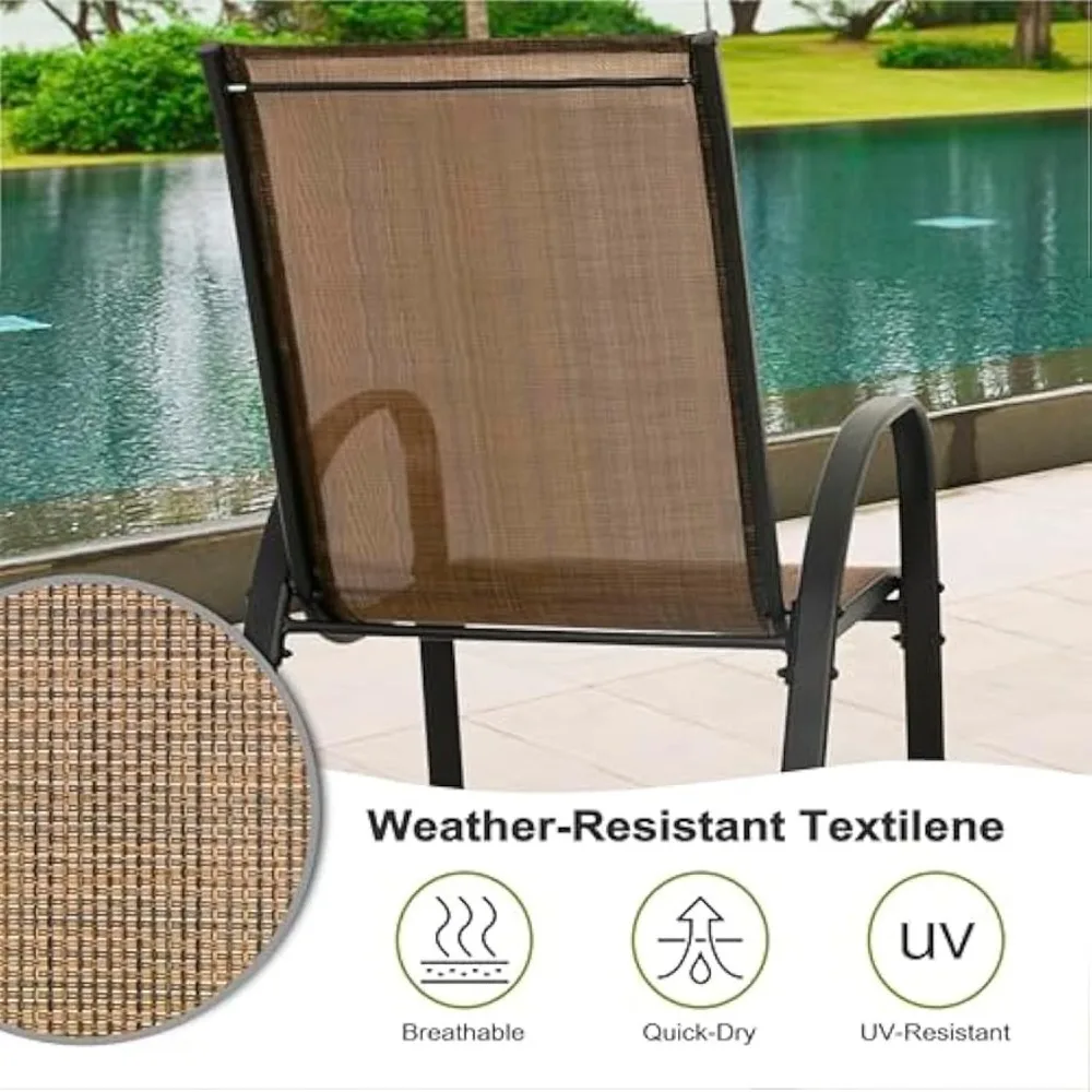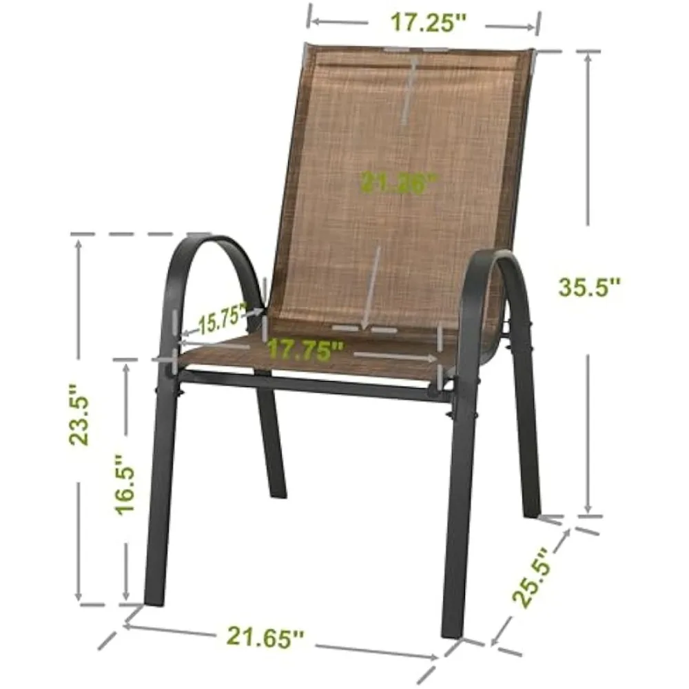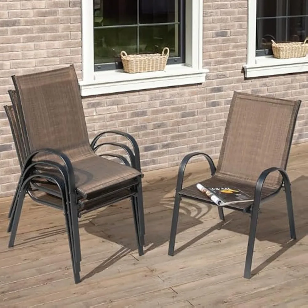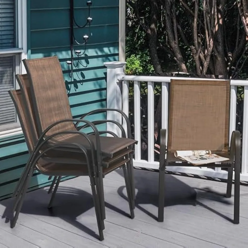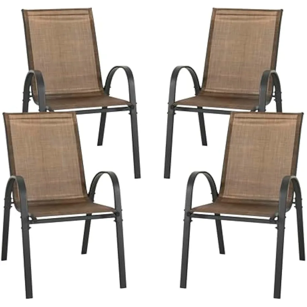 Upgrade your outdoor dining space with this set of four stackable patio dining chairs, designed for durability, comfort, and easy storage. Built with a sturdy metal frame and breathable all-weather Textilene fabric, these chairs resist fading, tearing, and moisture, making them ideal for year-round use on patios, decks, gardens, or poolside areas. The ergonomic high-back design provides excellent support for long meals and relaxing gatherings, while the lightweight structure allows you to stack and store the chairs effortlessly when not in use. With a sleek modern look that complements any outdoor table, this chair set is perfect for both casual family dinners and entertaining guests. Low-maintenance, rust-resistant, and built for everyday comfort, they’re a practical and stylish addition to any outdoor setup.
