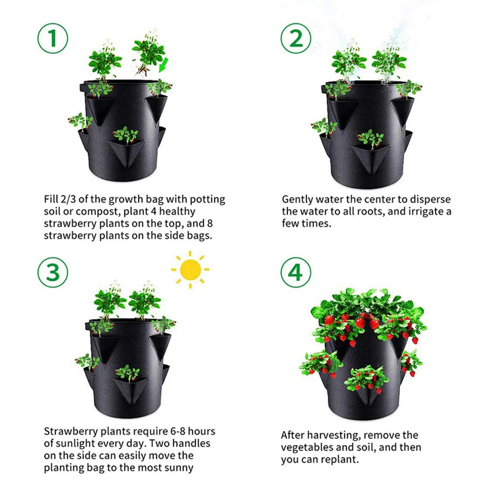 Grow strawberries and vegetables with ease using this strawberry planter grow bag, designed with 6 side pockets for maximum yield in compact spaces. Crafted from durable, breathable fabric, it promotes healthy root growth while preventing waterlogging, making it ideal for balconies, patios, or small gardens. The vertical design allows you to plant multiple strawberry plants or herbs in one container, saving space while creating a lush, productive display. The reinforced structure ensures stability, while the side grow pockets provide easy access for harvesting ripe strawberries. Lightweight and reusable, this planting bag is simple to move, store, and maintain, offering convenience for both beginner and experienced gardeners. More than just a container, it becomes a restorative tool—an invitation to pause, nurture, and enjoy the gentle rhythm of home gardening. Compact yet versatile, it transforms any corner into a flourishing strawberry patch or vegetable garden. Durable, eco-friendly, and practical, this strawberry grow bag is not simply a planter—it is a vessel of renewal, a symbol of balance, and a daily reminder that serenity can be cultivated through the joy of growing your own food.