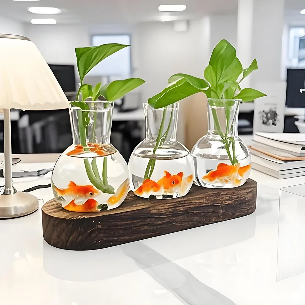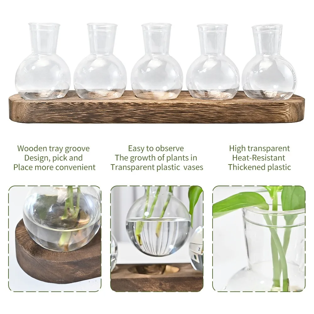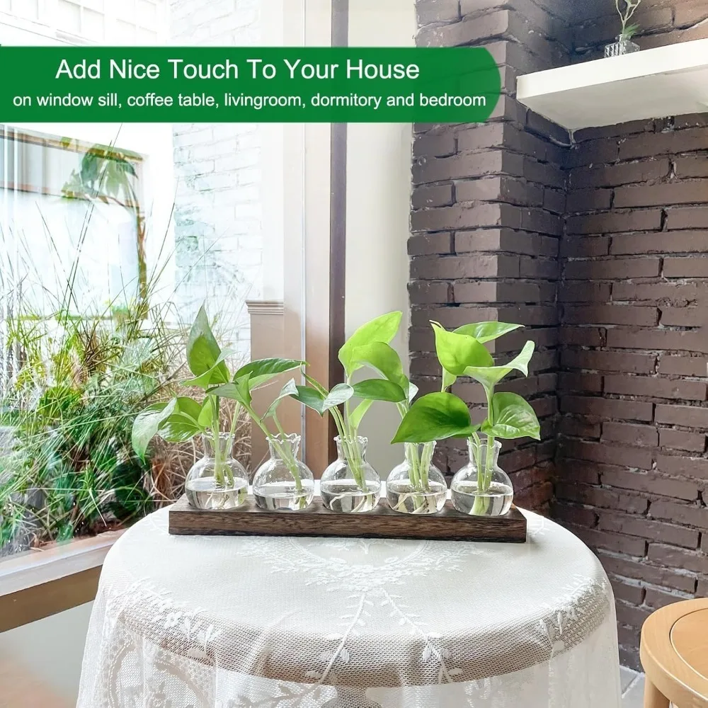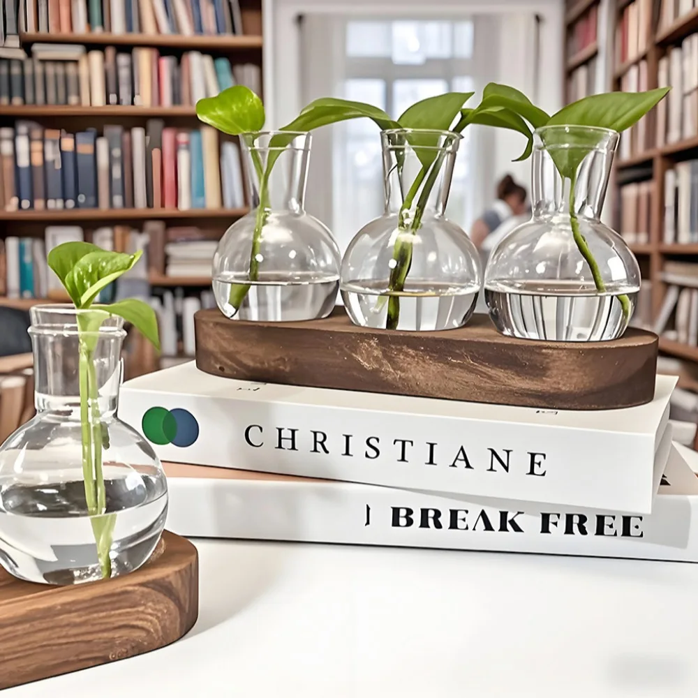 Bring calming, restorative beauty into your home or workspace with this elegant desktop plant propagation station, where glass and wood come together in perfect harmony. Designed for hydroponic plants, each delicate vessel invites you to slow down and appreciate the quiet miracle of growth—roots stretching, water shimmering, and greenery rising gently toward the light. Its minimalist form radiates peaceful balance, creating a soothing focal point that softens your environment and restores the spirit throughout the day. Whether placed on a desk, shelf, or bedside table, it encourages moments of stillness and serenity, grounding you amid busy routines. Ideal for plant lovers, mindful decorators, or anyone seeking a touch of natural tranquility, this terrarium becomes more than décor: it becomes a small ritual of renewal—an ever-present reminder that nature’s calm can live right within arm’s reach.