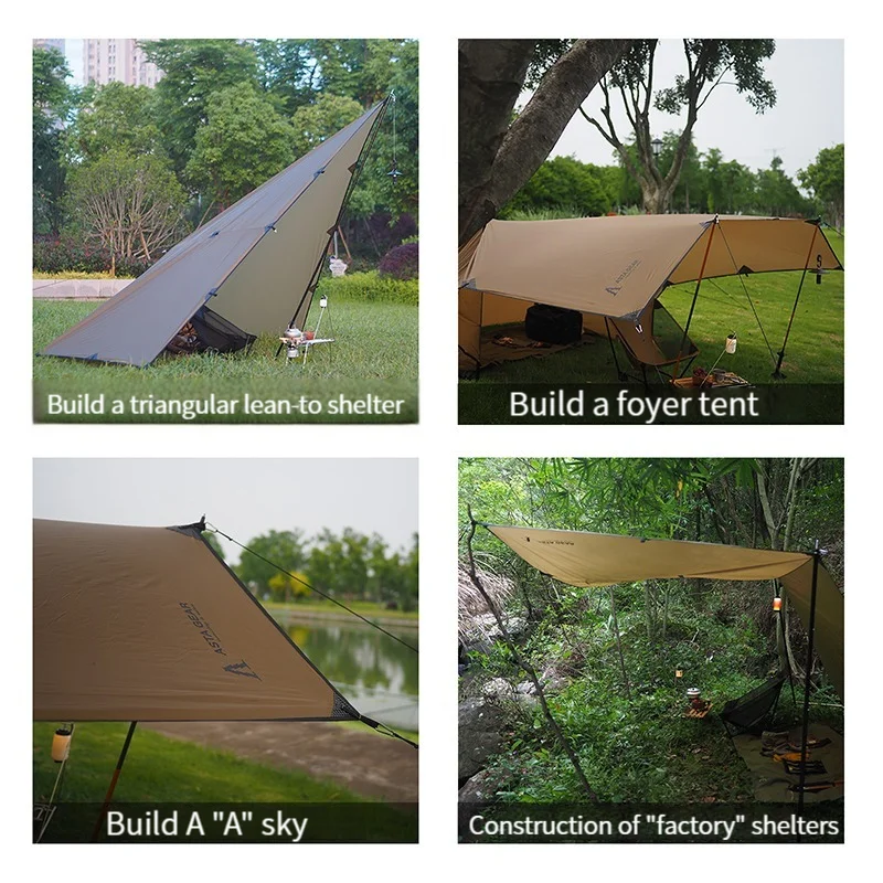 This ultralight camping tarp is a versatile all-weather shelter designed for bushcraft, hiking, backpacking, beach trips, and emergency survival setups. Available in 3x3m and 4x4m sizes, it provides generous coverage for shade, rain protection, or wind blocking. Made from durable, waterproof material with reinforced tie-out points, it can be configured as a tent, hammock cover, ground sheet, or sun awning. Easy to pack and quick to set up, it’s ideal for anyone who needs reliable shelter without extra weight. Whether you’re creating a shaded campsite, building a survival shelter, or setting up a dry cooking area, this tarp is a dependable essential for outdoor living.
