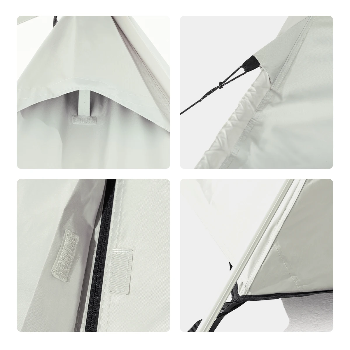 This UV50+ pyramid camping tent offers reliable protection and comfort for 1–2 people, making it ideal for solo adventurers, couples, or lightweight backpackers. Designed with a black coating for enhanced sun protection, it blocks harmful UV rays while helping maintain a cooler interior temperature. Its pyramid structure provides excellent wind resistance, while the waterproof fabric keeps campers dry in sudden rain. Easy to set up and pack down, the tent is perfect for camping, hiking, trekking, festivals, or beach shelter use. With its compact size, durable materials, and stylish Indian-inspired design, it delivers a strong balance of portability, weather defense, and modern outdoor utility.