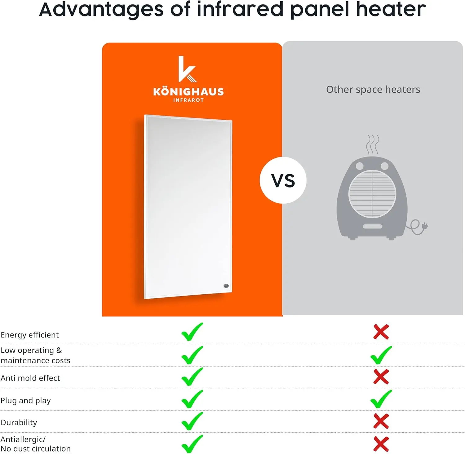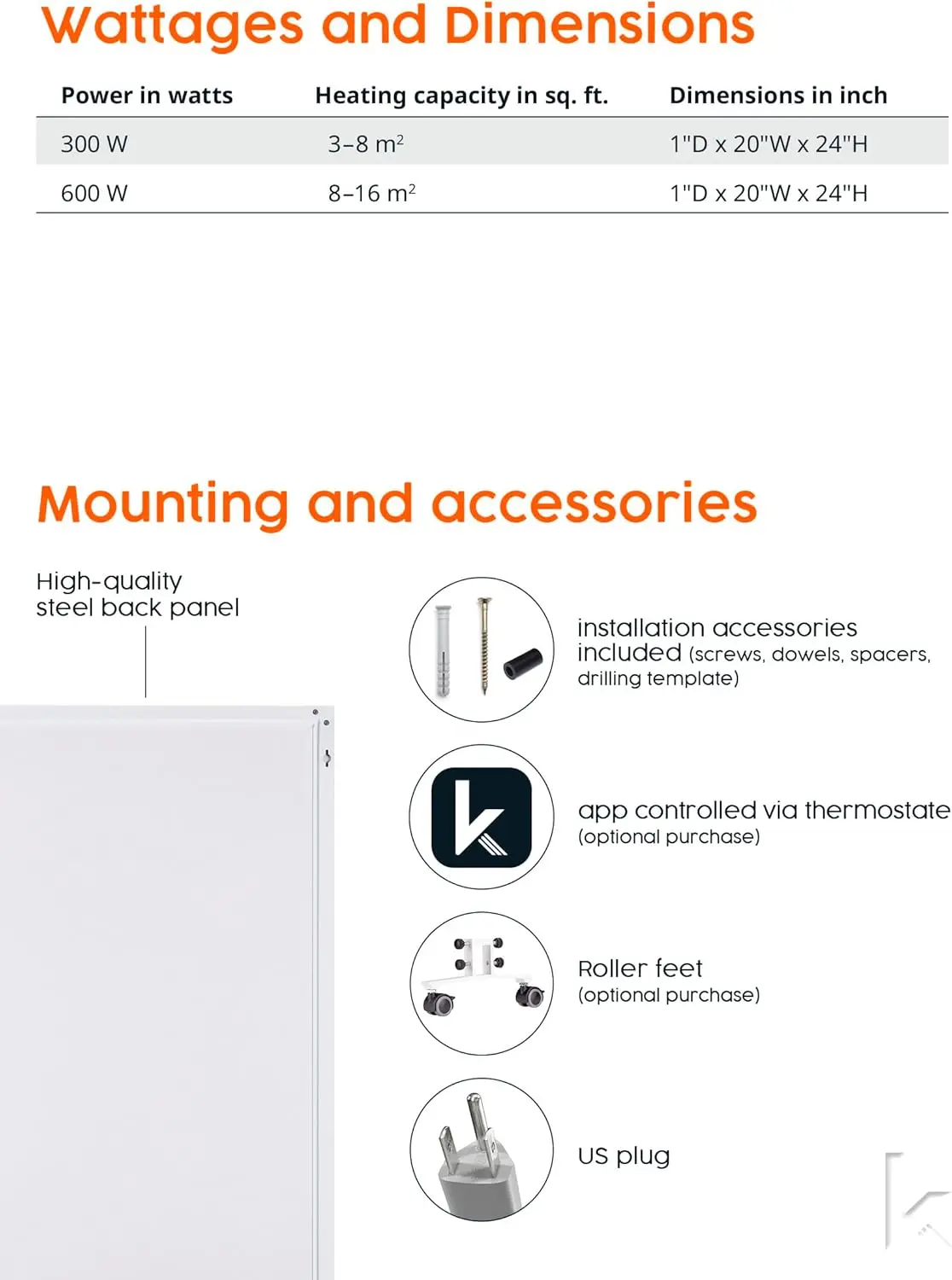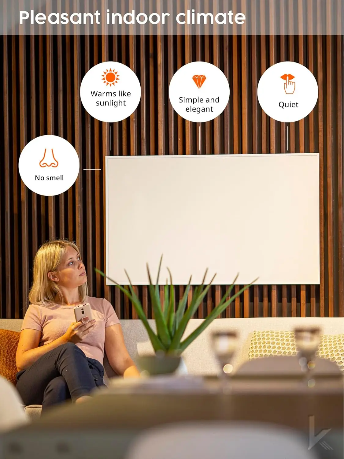 This wall-mounted infrared space heater delivers fast, efficient warmth for areas ranging from 86 to 142 square feet, making it ideal for bedrooms, offices, small living spaces, or workshops. Designed for energy-saving performance, it uses infrared heating technology to warm people and objects directly instead of wasting energy on unused air. The slim, modern profile mounts easily to the wall, freeing up valuable floor space while providing consistent, quiet heat. With rapid heat-up time and an eco-friendly electric design, it offers a safe and cost-effective alternative to traditional space heaters. Perfect for supplemental heating or targeted warmth, this unit brings comfort without sacrificing style or energy efficiency.