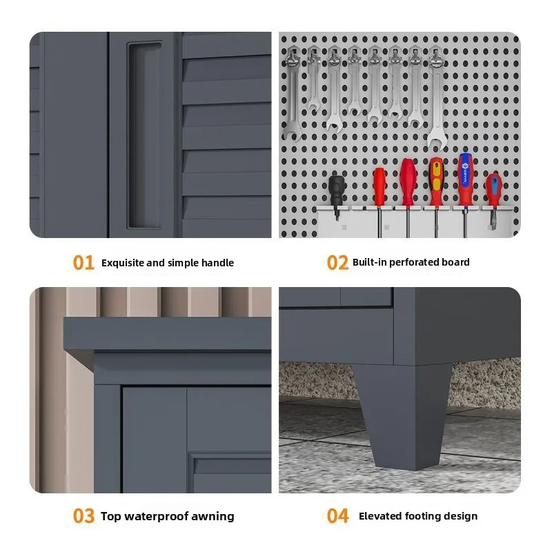 This waterproof and sunproof outdoor storage cabinet offers a large-capacity solution for organizing tools, toys, and garden essentials. Designed for patios, courtyards, and backyards, it keeps items protected from rain, sun, and dust year-round. The durable construction ensures long-lasting use, while its versatile interior makes it perfect for everything from gardening tools to outdoor accessories. With a clean, space-saving design, this storage box helps keep your outdoor areas neat, tidy, and clutter-free.