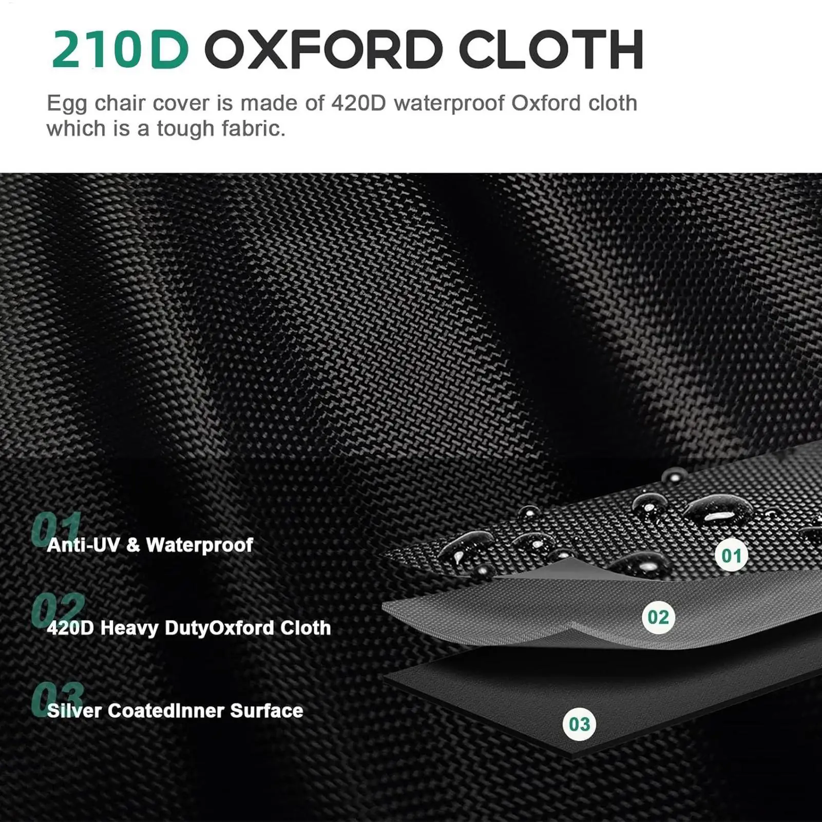 Protect your outdoor furniture with this Waterproof Patio Egg Chair Cover, designed specifically for double-seat cocoon or swing chairs. Made from durable 210D Oxford cloth, it provides reliable protection against rain, sun, dust, and snow, keeping your chair clean and dry all year round. The heavy-duty fabric and waterproof coating ensure long-lasting use, while the adjustable drawstring and zipper closure offer a secure fit, even on windy days. Easy to put on and remove, this cover folds compactly for convenient storage when not in use. Ideal for gardens, patios, balconies, and outdoor lounges, it’s the perfect solution to extend the life and beauty of your hanging egg chair.