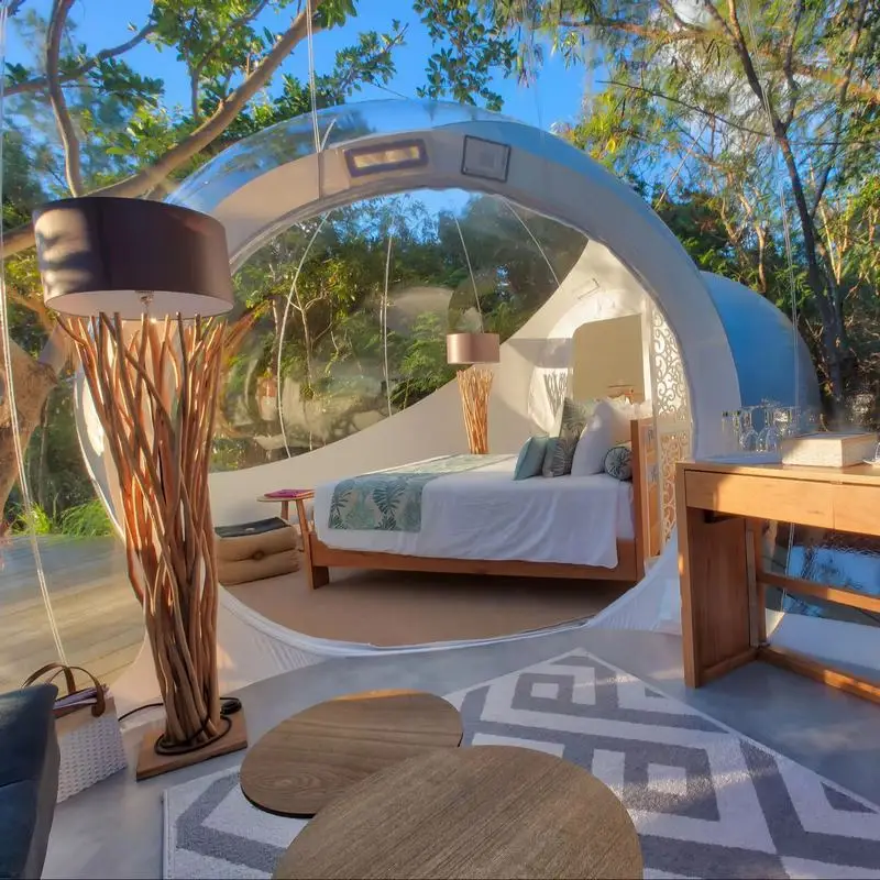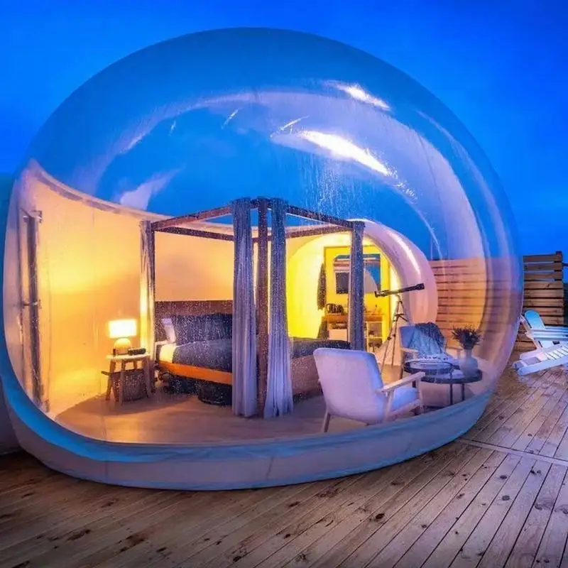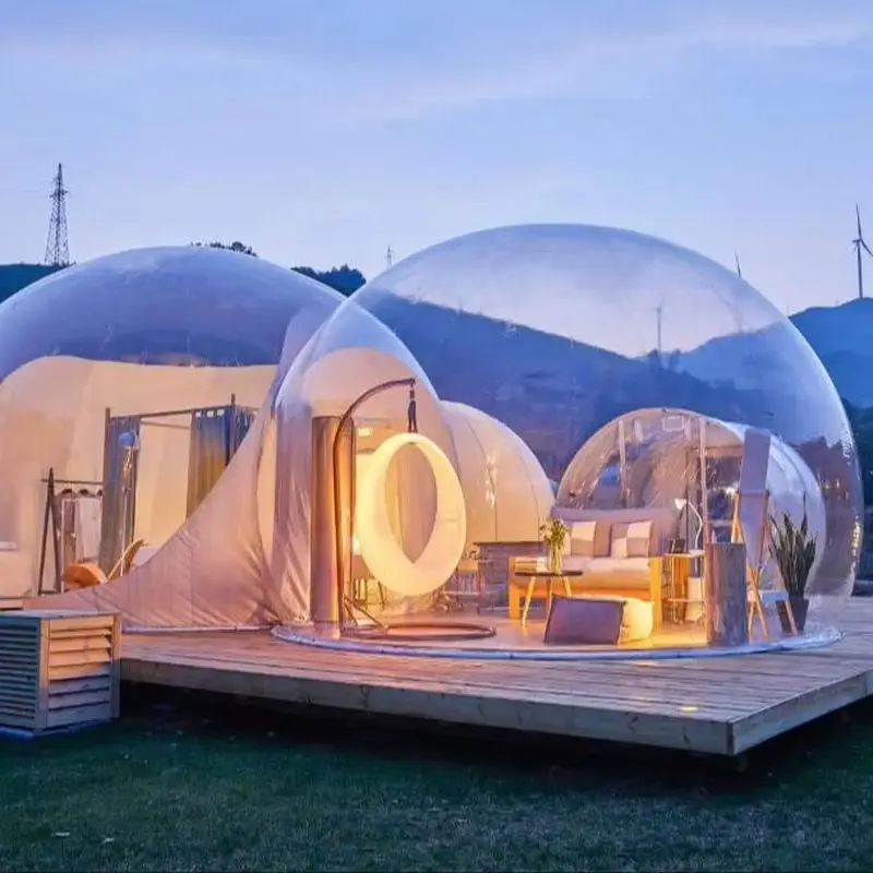 Experience stylish outdoor living with this waterproof PVC geodesic dome house, perfect for glamping, eco-resorts, or private retreats. Designed for durability and comfort, the dome’s strong framework and weather-resistant PVC covering ensure protection in all climates.