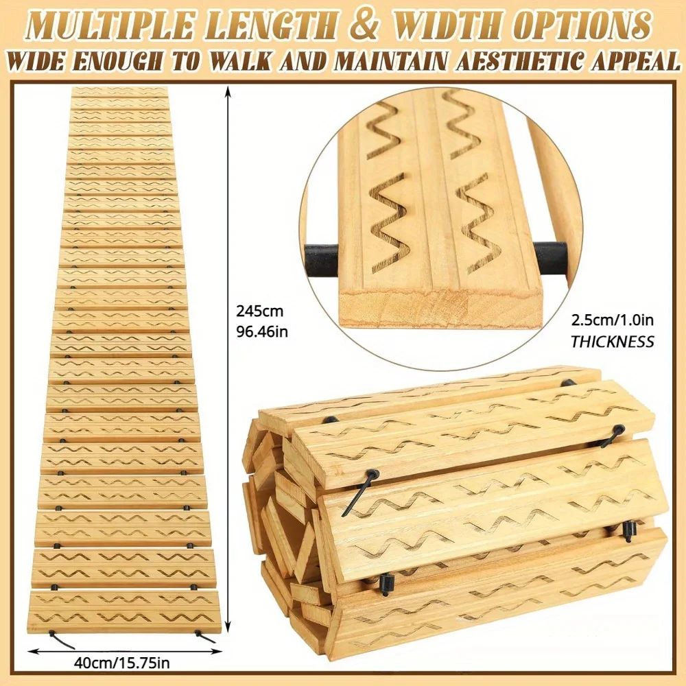 Enhance your garden, courtyard, or event space with this wooden floor mat, perfect for creating decorative pathways. Designed for outdoor use, it provides a stable and stylish surface for foot traffic while adding a natural, elegant touch to any setting. Ideal for gardens, patios, wedding ceremonies, parties, or backyard events, the mat is durable, weather-resistant, and easy to install. Its modular design allows for flexible layout arrangements, creating a seamless wooden passage that combines practicality, aesthetics, and functionality. Perfect for DIY projects or special occasions, it transforms ordinary spaces into inviting and polished walkways.