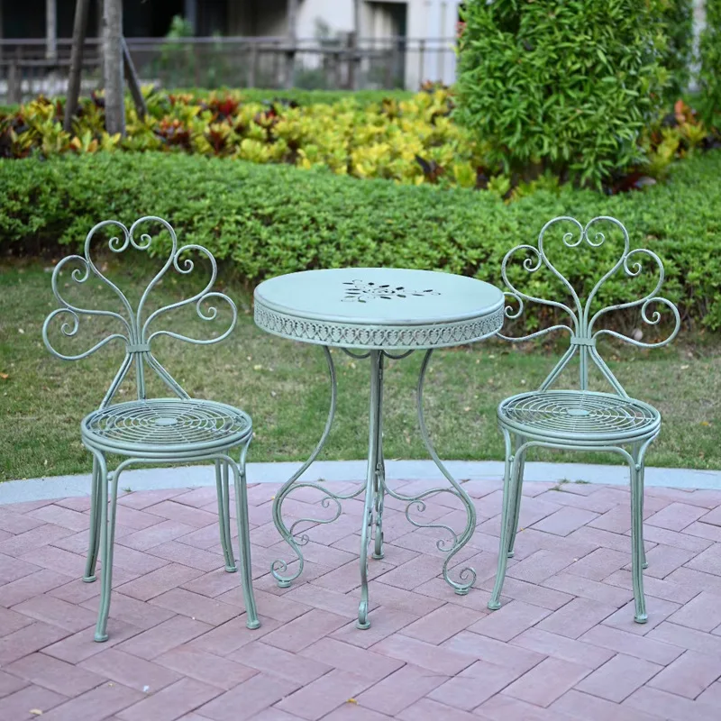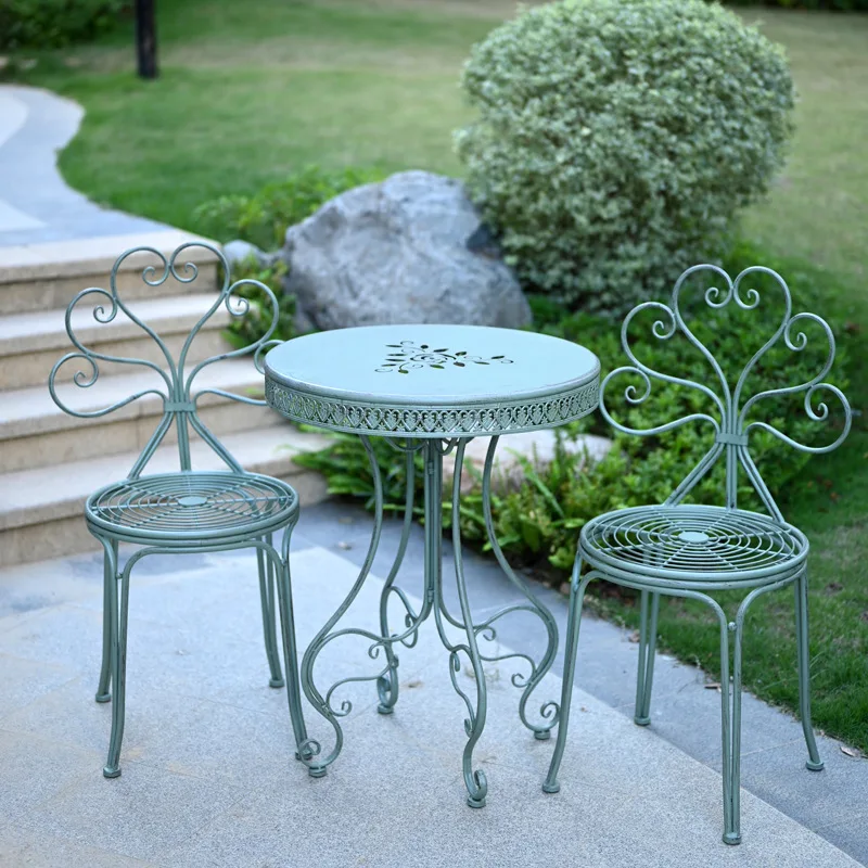 Bring rustic charm to your outdoor space with this American country-style wrought iron table and chair set. Crafted with elegant curves and durable metalwork, it captures the timeless beauty of pastoral design while offering sturdy, long-lasting use.