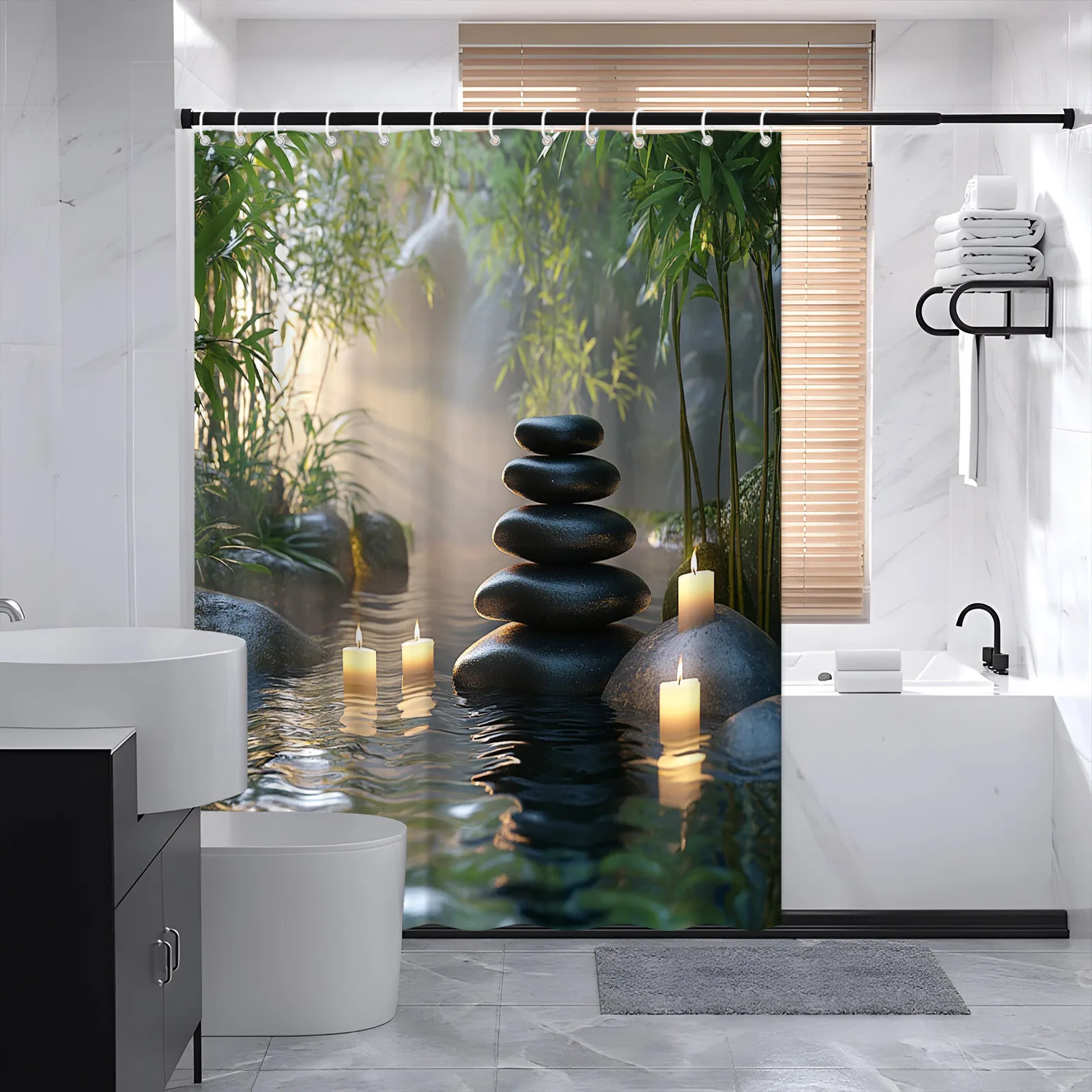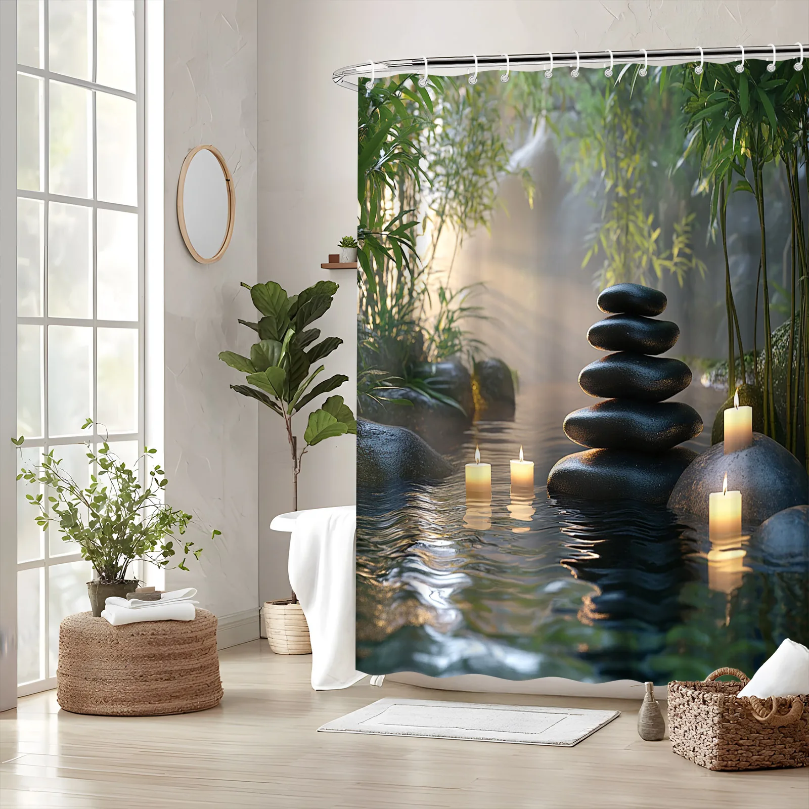 Transform your bathroom into a peaceful oasis with this Zen Garden Shower Curtain, designed to bring a sense of calm and balance to your daily routine. Featuring a soothing nature-inspired scene, this curtain evokes the stillness of a traditional Zen garden, making it perfect for anyone who appreciates meditation, mindfulness, or spa-like home décor. Crafted from durable, water-resistant fabric, it not only adds style but also provides long-lasting function and privacy. The high-definition print enhances any bathroom aesthetic, whether modern, minimalist, or boho. Easy to hang and simple to clean, it’s a practical yet beautiful upgrade for refreshing your space. Create a quiet retreat right at home—just step into the shower and let the peaceful design wash the stress away.